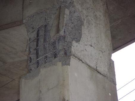 主筋に座屈や大変形が生じている場合、柱幅の半分以上が斜めのひび割れにそってコンクリートが剥落し主筋が見える場合、フープ筋が破断または外れている場合は、 既に最大耐力に到達し、耐力低下が生じているものと考えられ、余震により上層階の支持能力が低下するものと予測される。