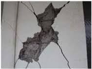 (損傷度4) 幅2㎜を超える割れが多数生じ、コンクリートの剥離も激しく、鉄筋がかなり露出している。