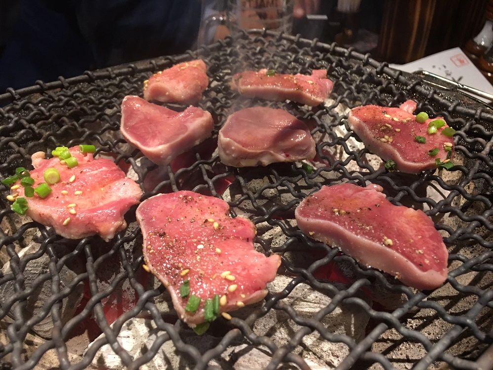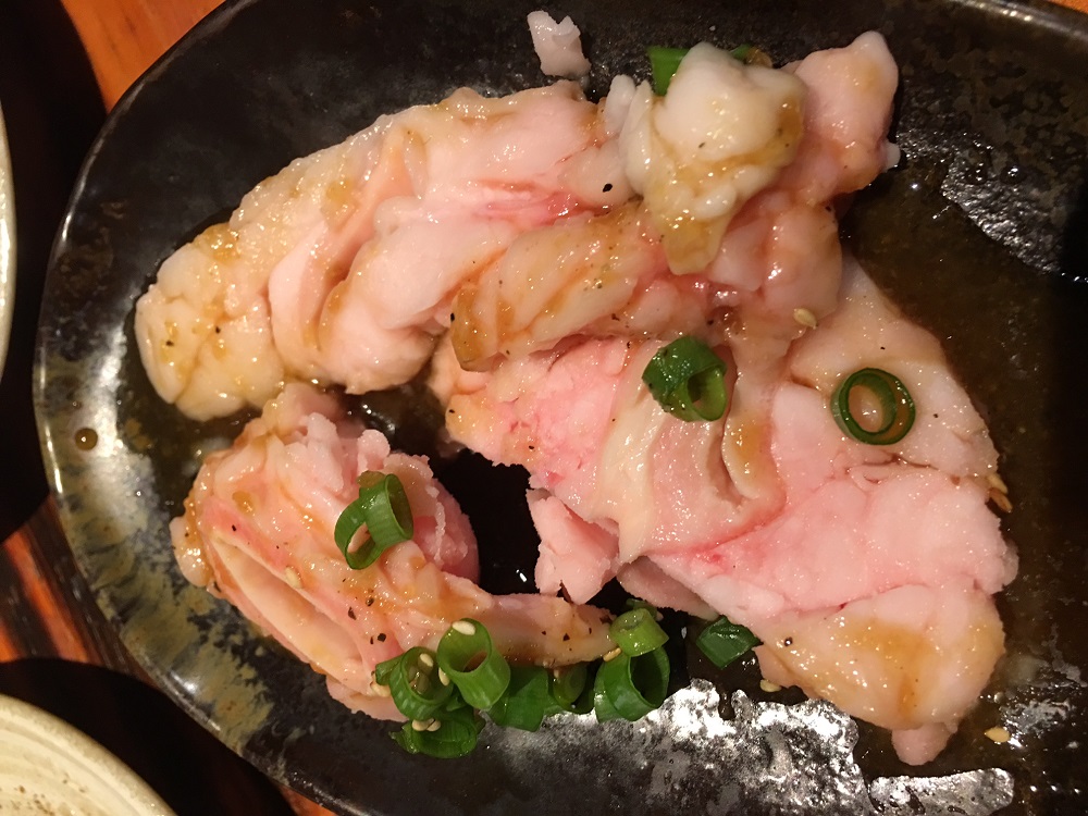 豚タン500円、新鮮さは写真でもお分かりになると思います。特製塩だれと相まってタンの美味さを存分に味わえる一品です。
