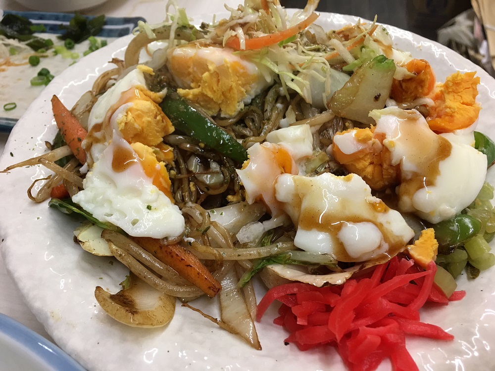 焼きそばに目玉焼き