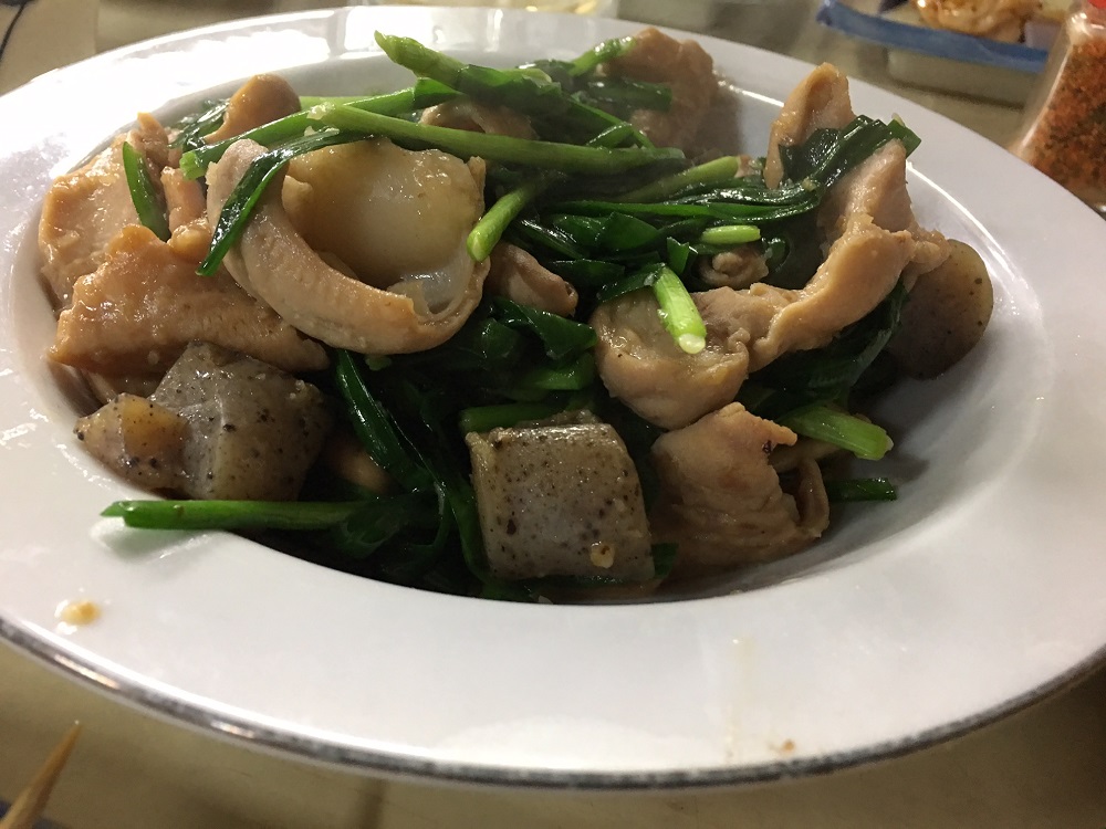 ちょっと脂っこいものが続いた後に、白センマイ刺しです。手間隙惜しまず下ごしらえに専念した結果でしょう。 真っ白なセンマイです。コリコリとした食感を楽しみながら甘味噌だれで頂きます。