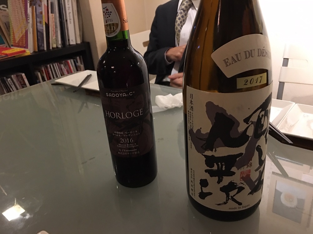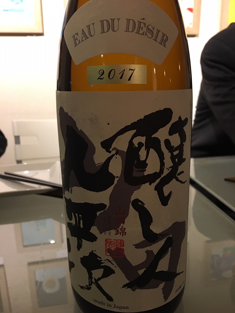 まずは、お店自慢のイチジクとクルミを練りこんだパンが出てきたところで、持ち込んだ「醸し人九平次」の開栓です。
