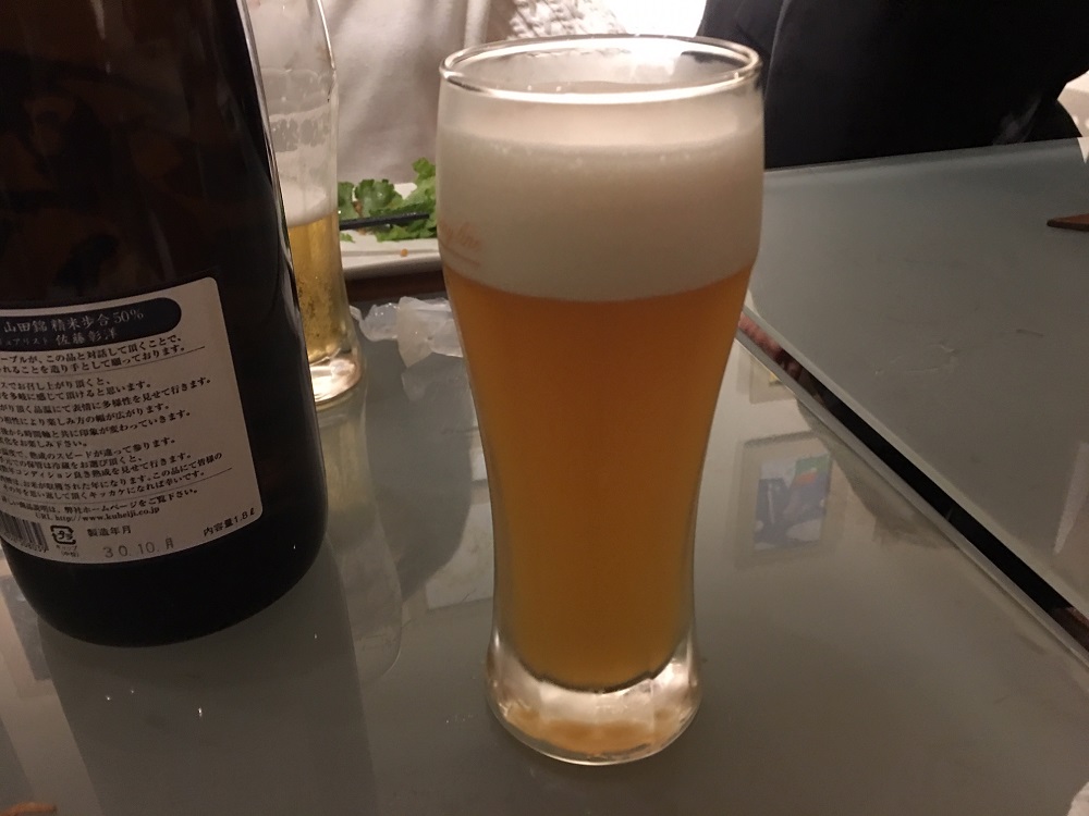 本日の生ビールは、コエドとブルームーンがいただけます。 まずはコエドで乾杯! シトラスフルーツを思わせるアロマがさわやかに香るビールです。 続いて、ブルームーン、さわやかなオレンジの香り、コエドに比べ濃い目の味わいです。  メンバーの顔を見ると、みんな満足そうないい顔です。 とりあえず、気に入ってもらえた様です。