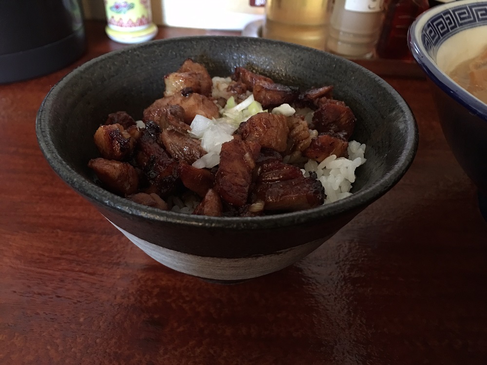 そして、欠かせないお供が、チャーシュー丼。やわらかいチャーシューがコロコロとトッピングされ。もう幸せになれます。