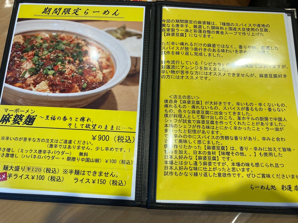 期間限定の麻婆麺 900円