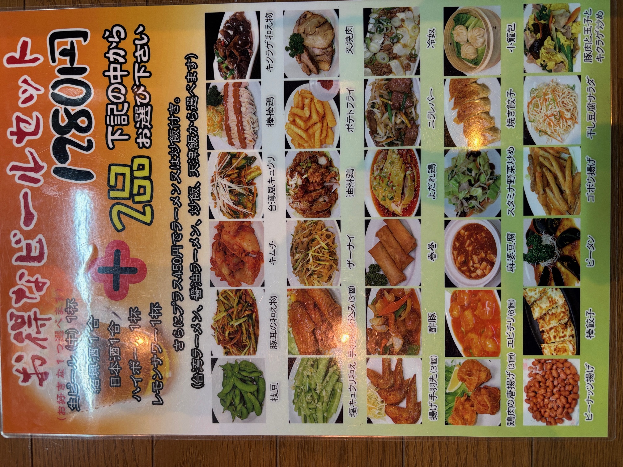さらにプラス450円で麺類や炒飯などが追加できます