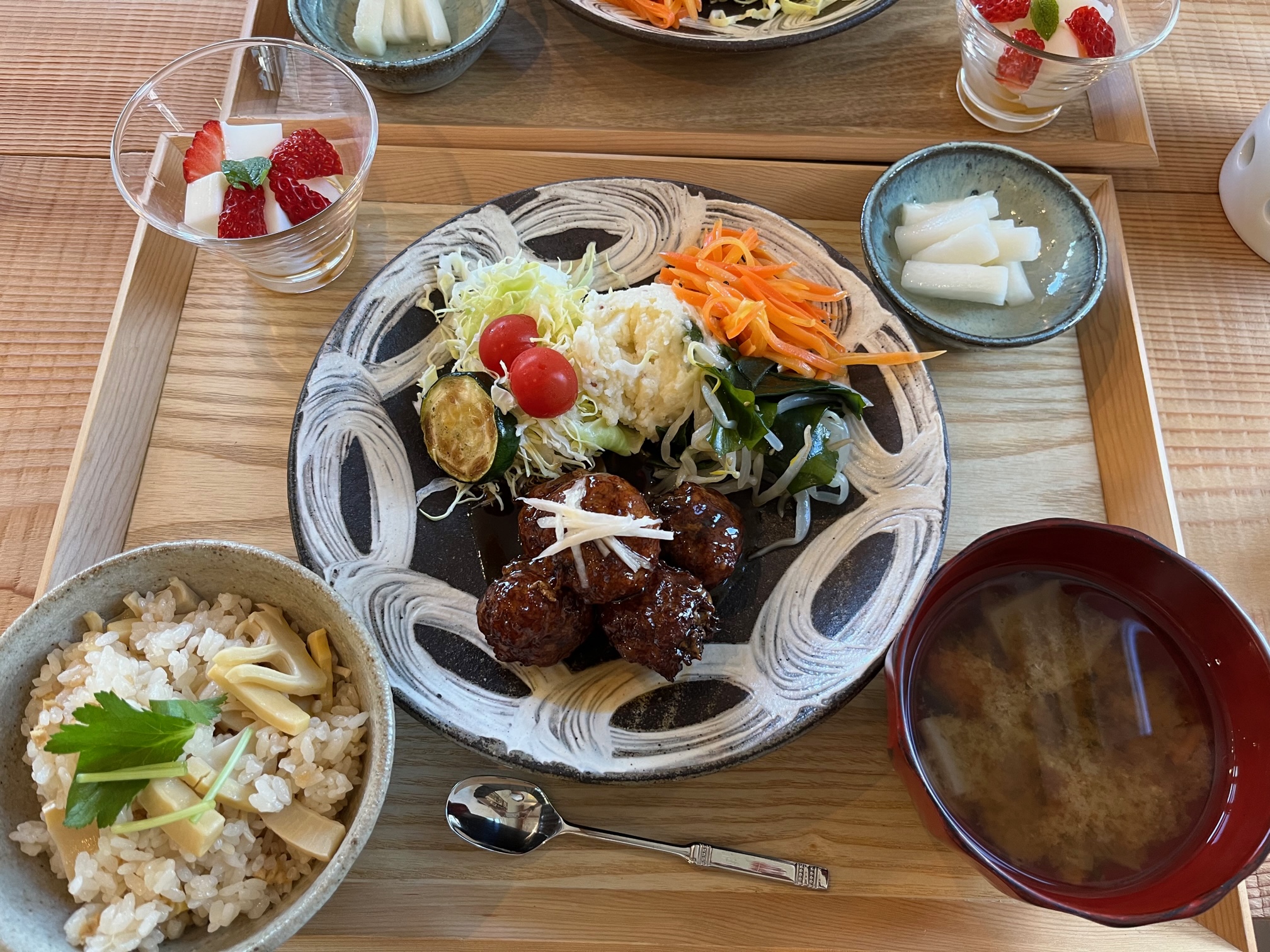 甘酢団子と竹の子ご飯のランチ(2023.4)