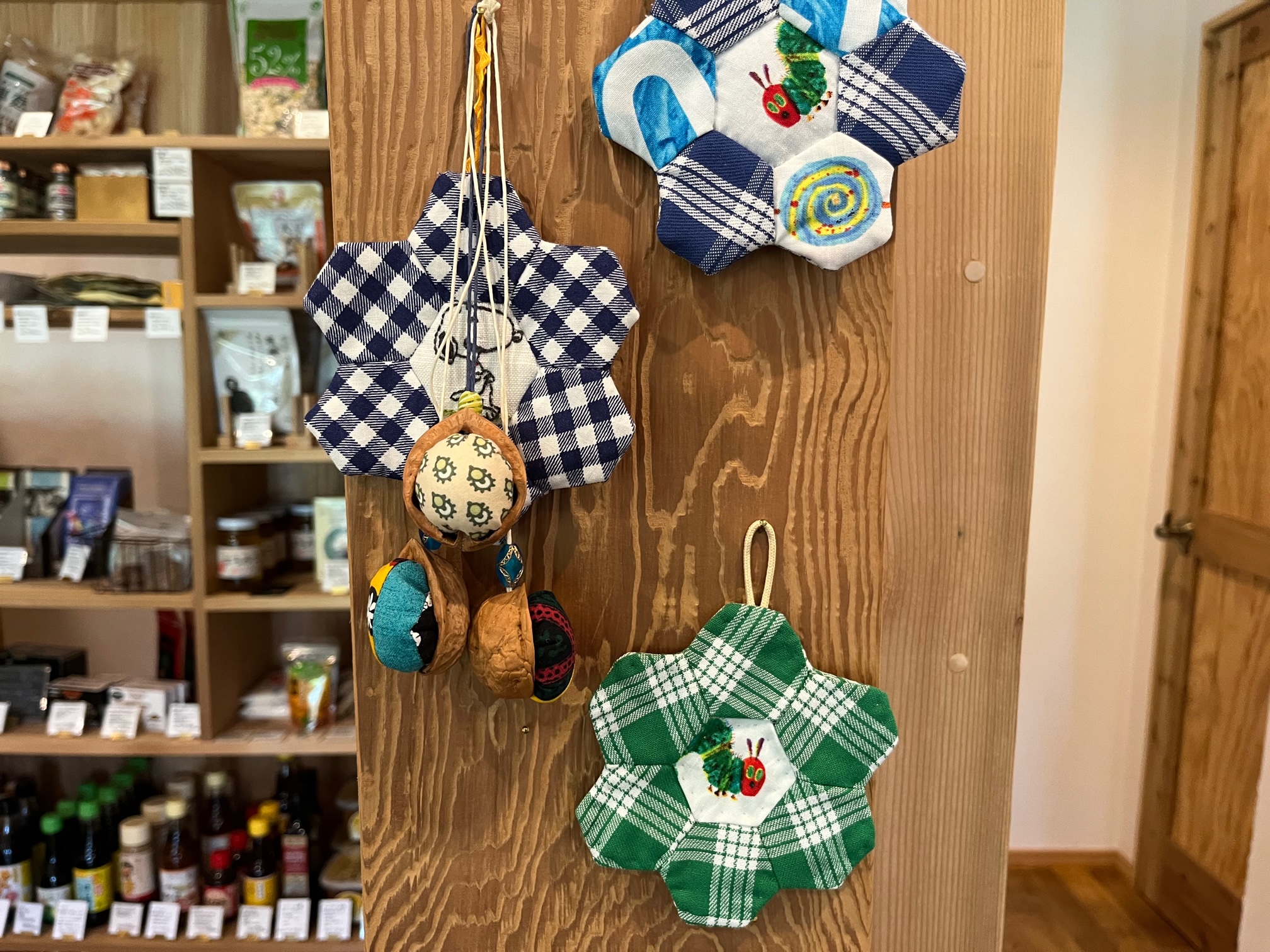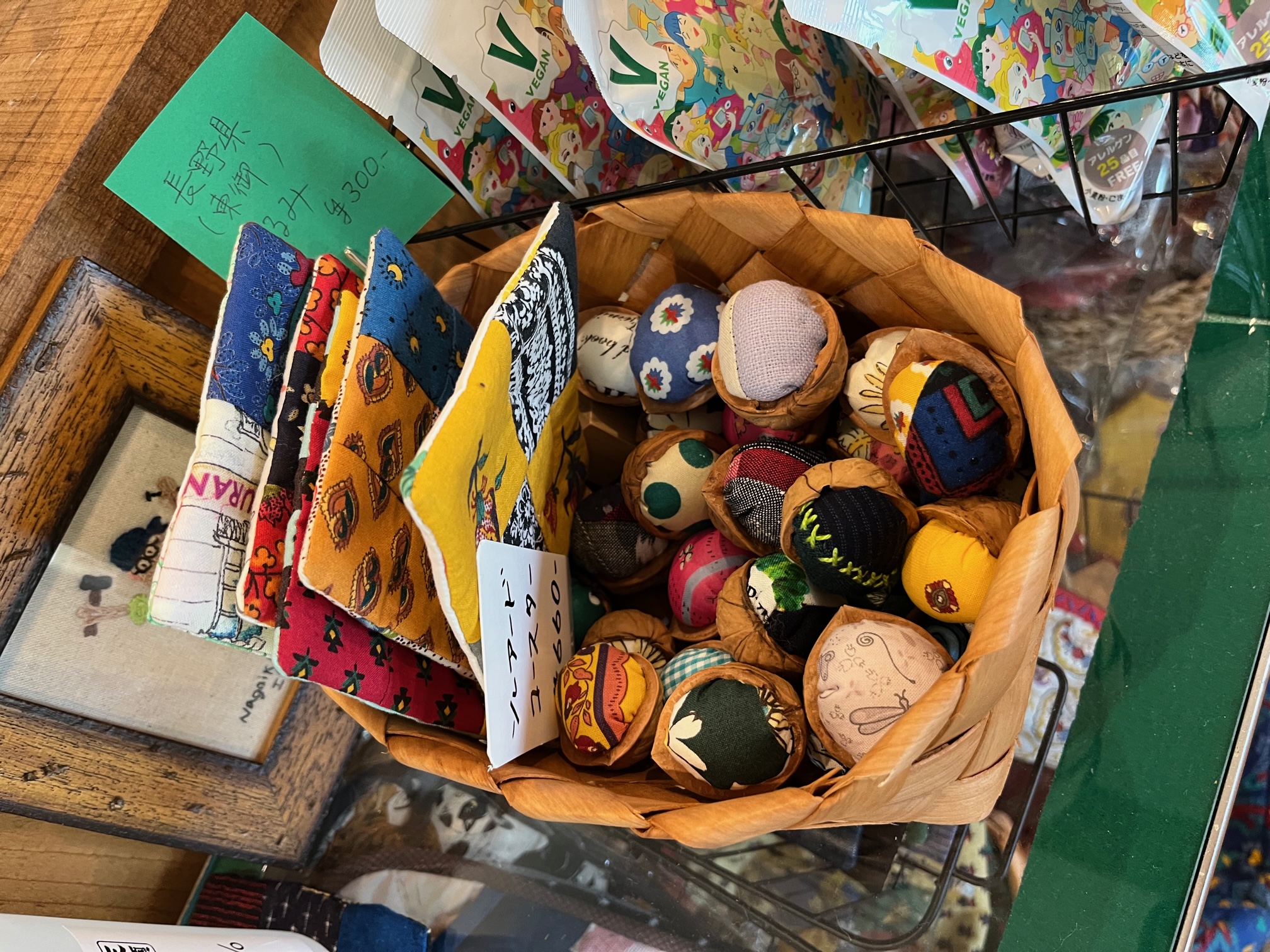 クルミの殻に布の端切れを使ったかわいい小物300円(2023.5)