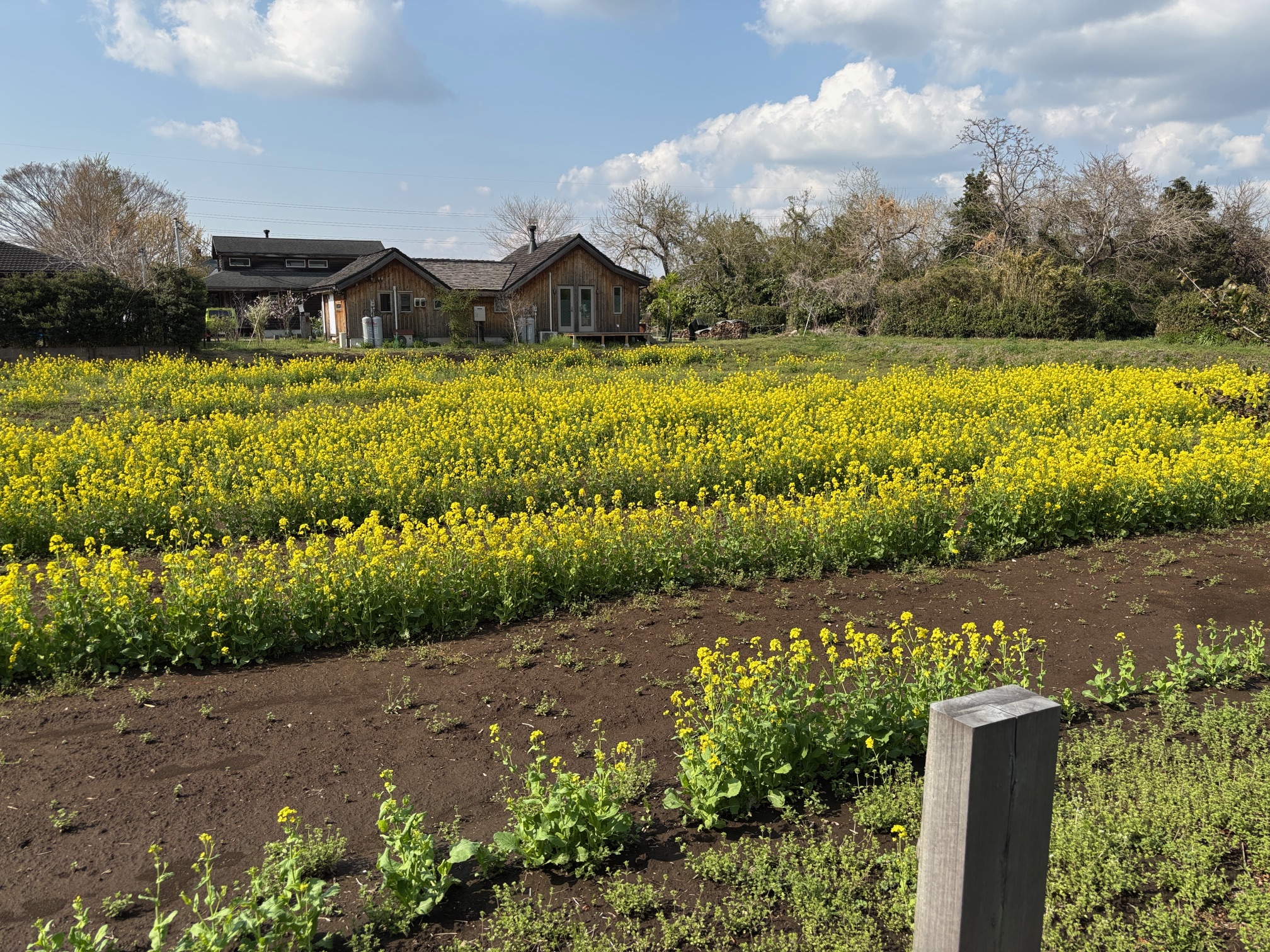 店主が3年越しで綺麗に咲かせた畑一面の菜の花(2025.03)