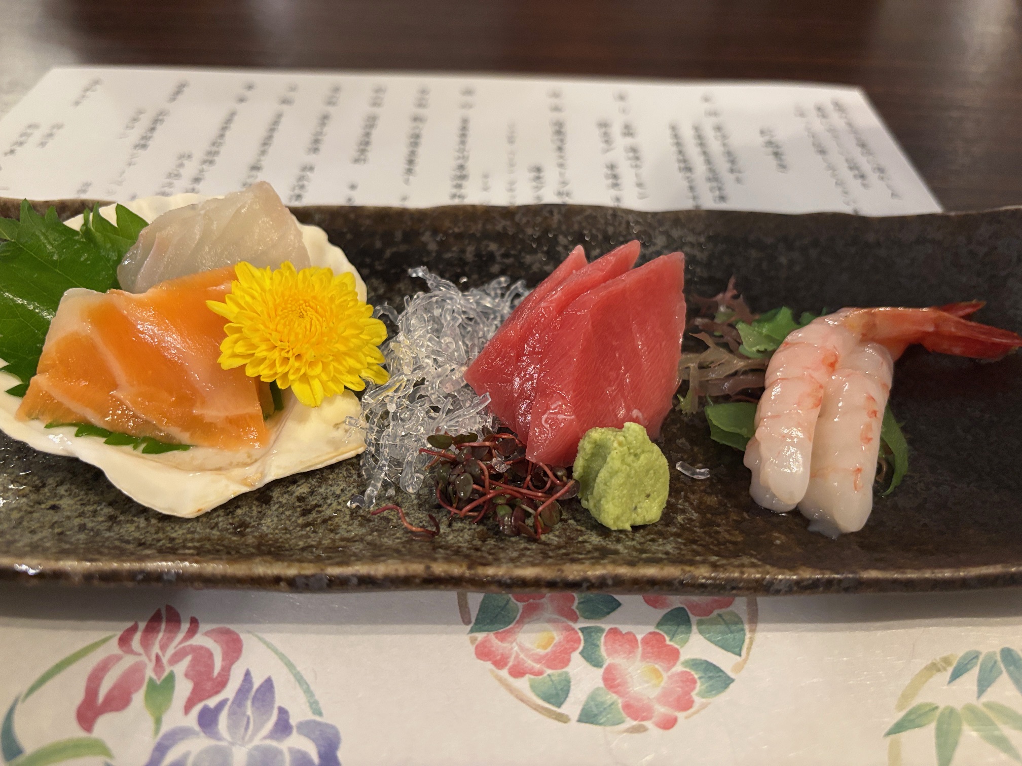 ◆造り・・本鮪、海峡サーモン、鮃昆布〆、甘海老 造り醤油