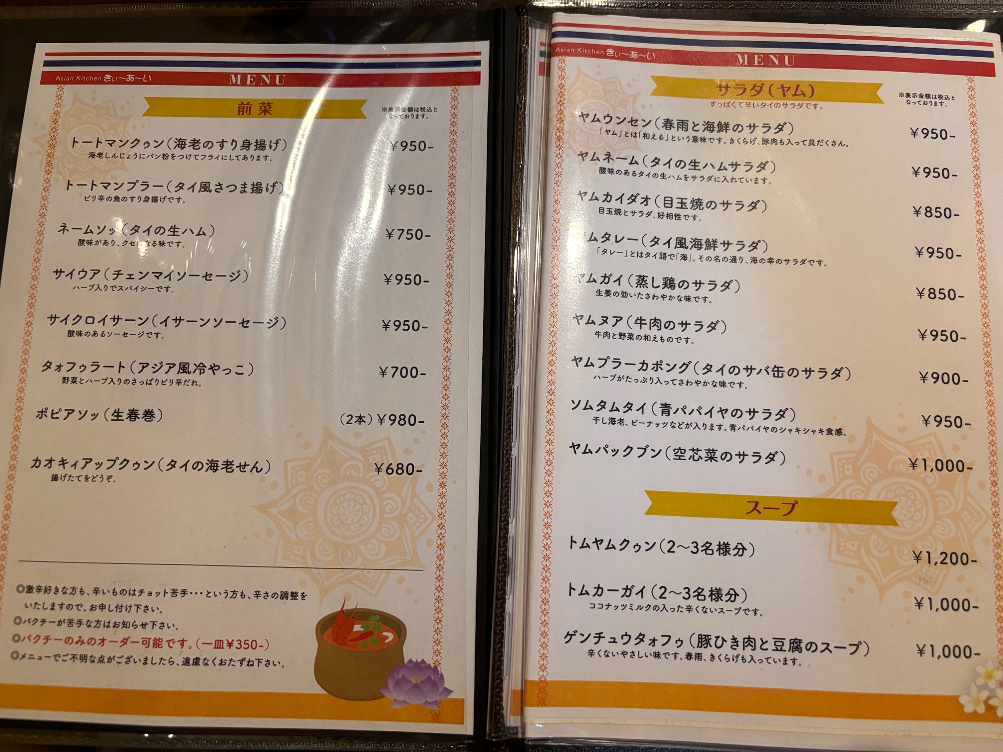※どのセットにもサラダとスープめん(めんのセットには小さいガパオライス)又はデザートが付きます
