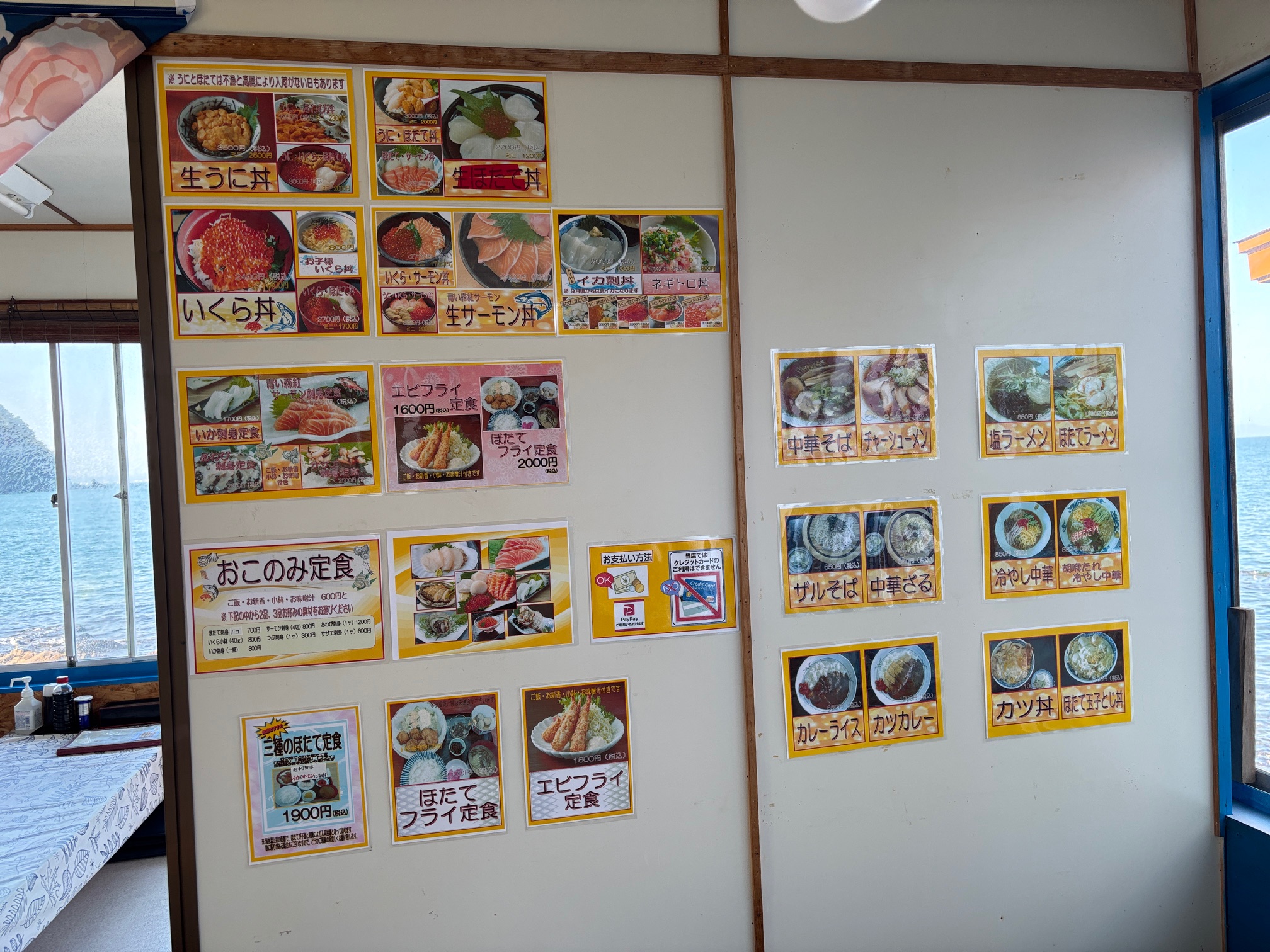 席の直ぐ下が海で、まるで船に乗って食事してるような錯覚をしてしまいそうです(2025.10)