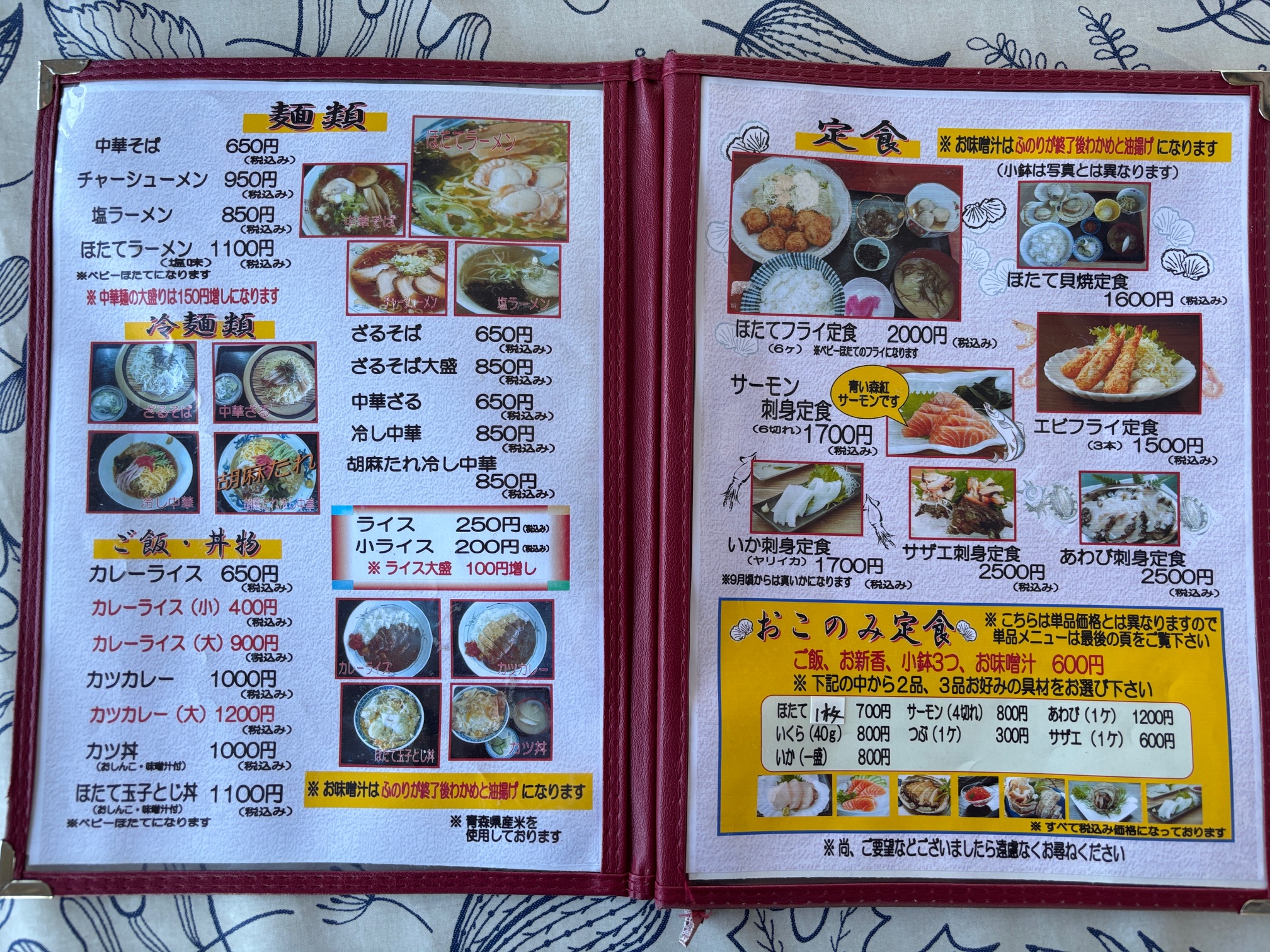 メニュー 麺類、冷麺類、ごはん・丼物、定食(2025.10)