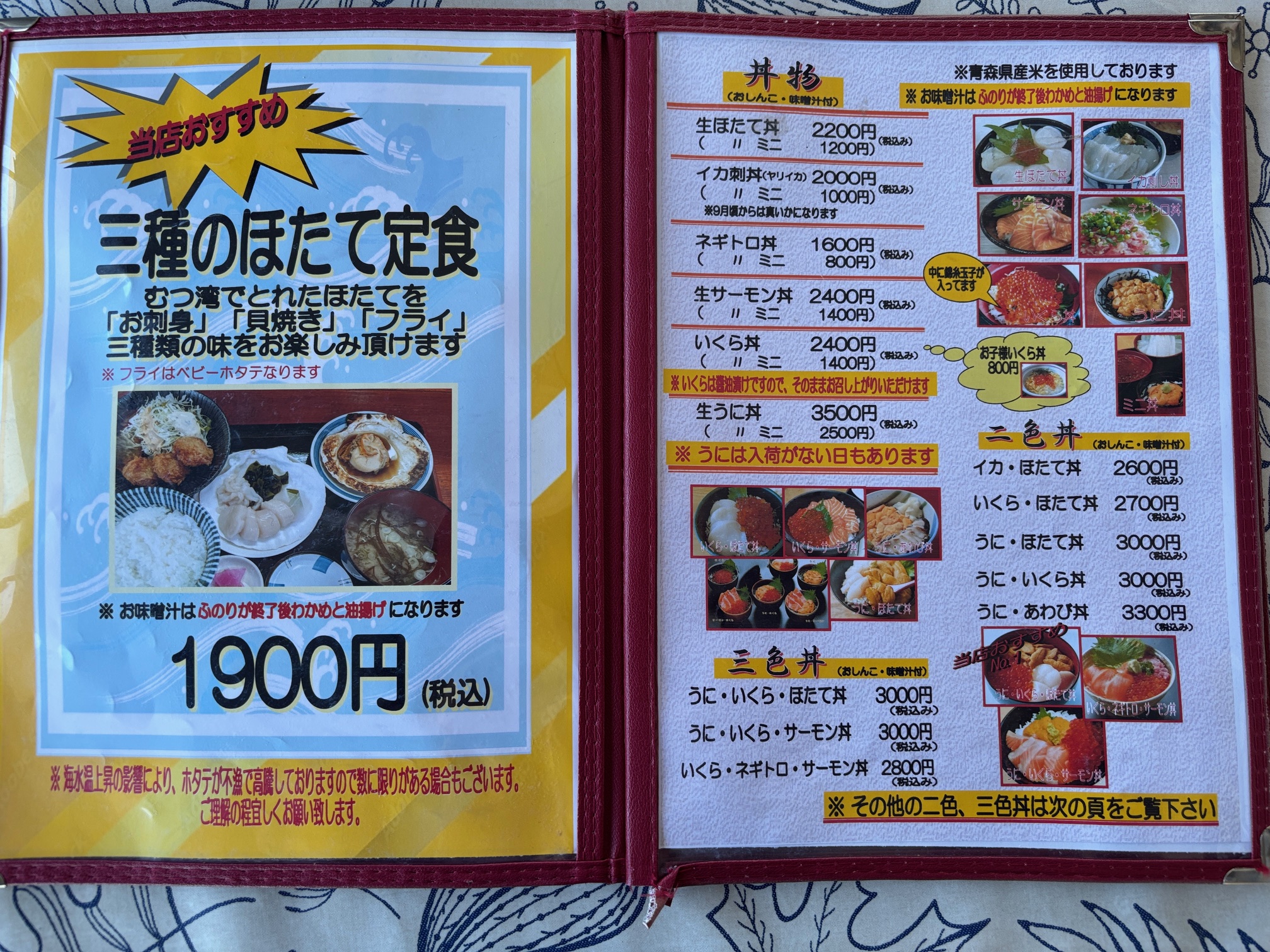メニュー 三種のほたて定食、丼物(2025.10)