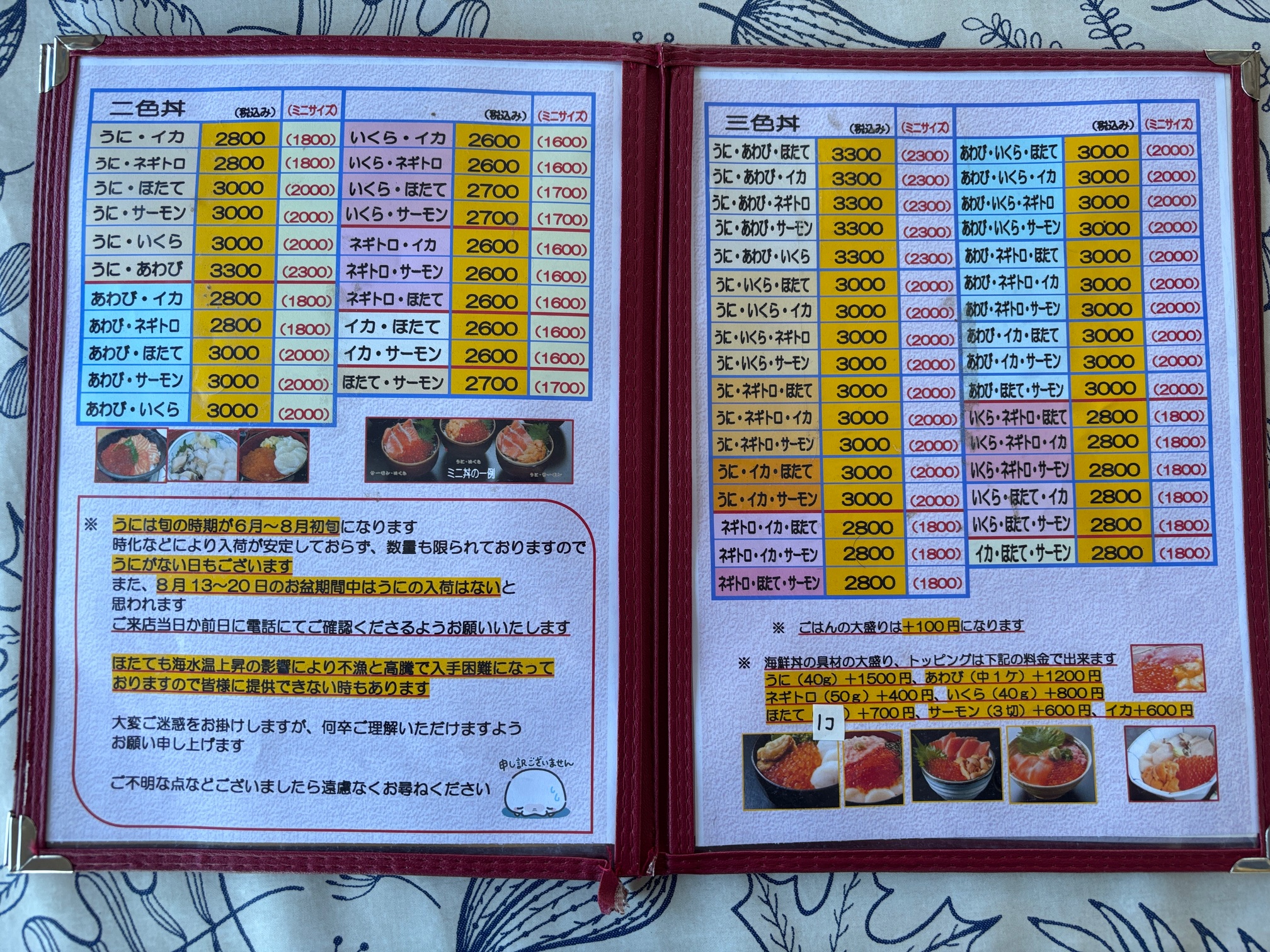 メニュー 二色丼、三色丼(2025.10)