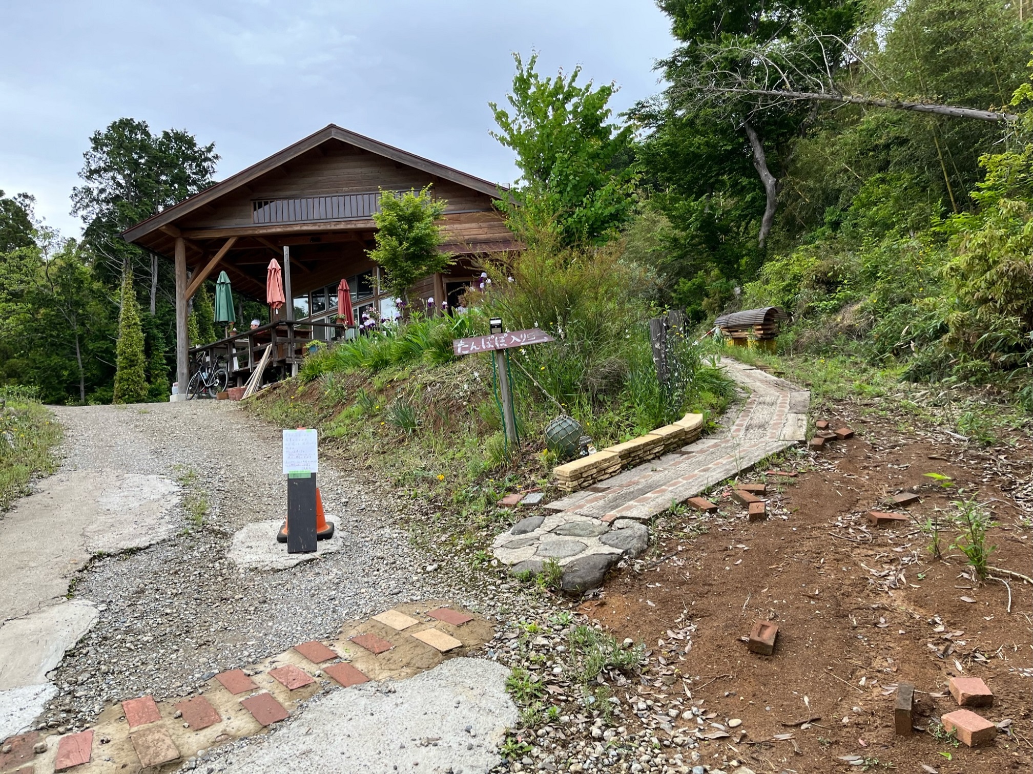 車を坂道の途中の駐車場に駐め、お店に向かう坂道を登っていくと、お店の前で店主らしき方に声をかけていただきました。
