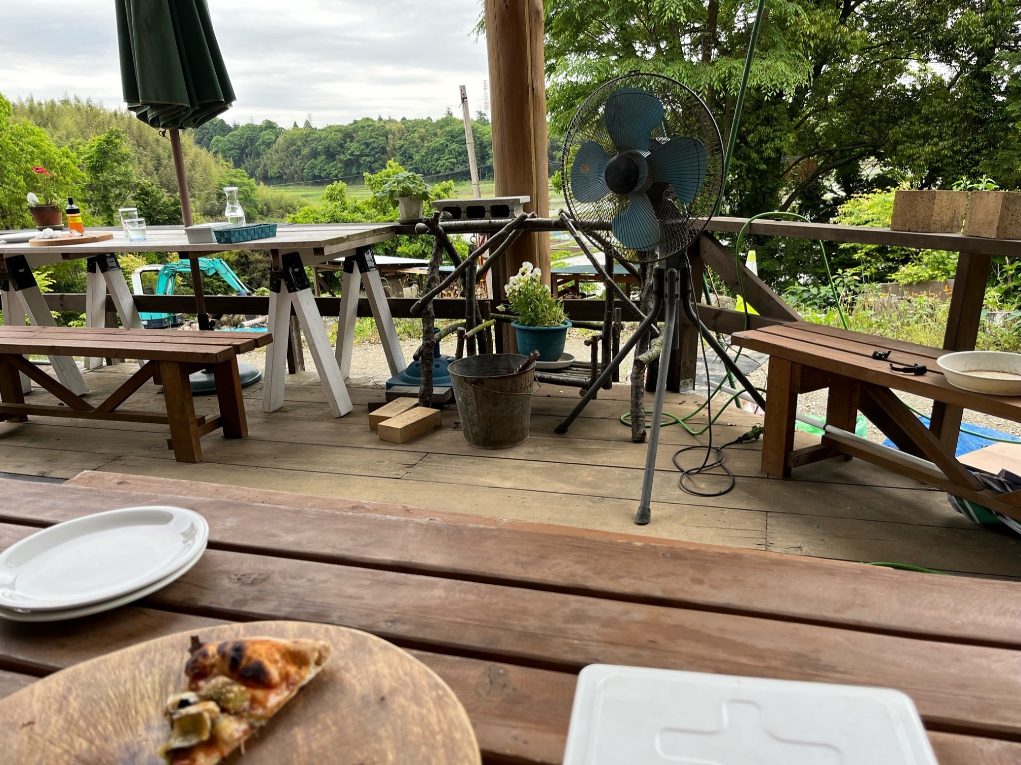 「ご予約ですか?」、「いいえ」と答えると、 「外のお席でサラダバーなら提供できますが」、せっかくなので了承し、