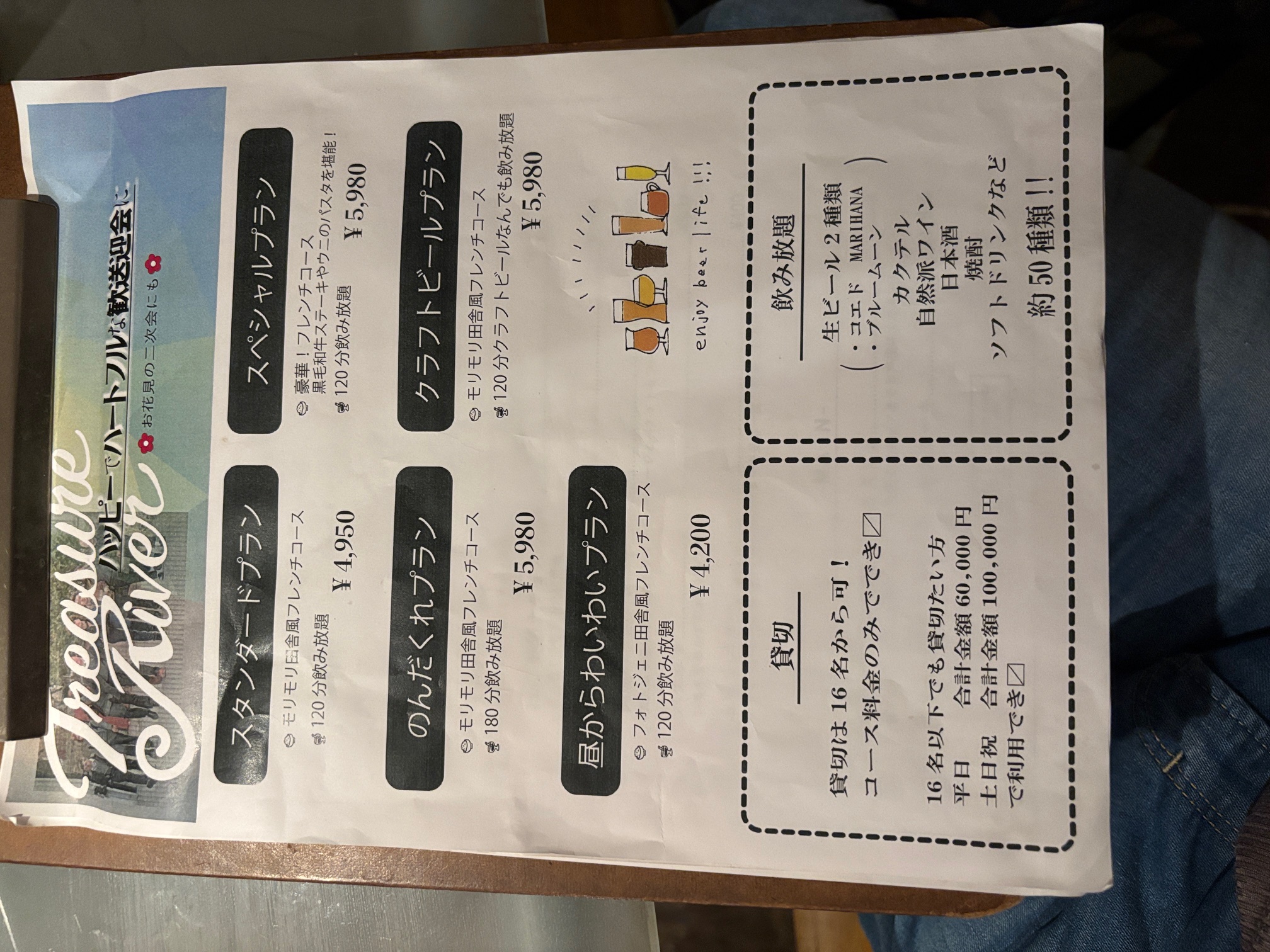 ◆スタンダードプラン4,950円(モリモリ田舎風フレンチコースと120分飲み放題)