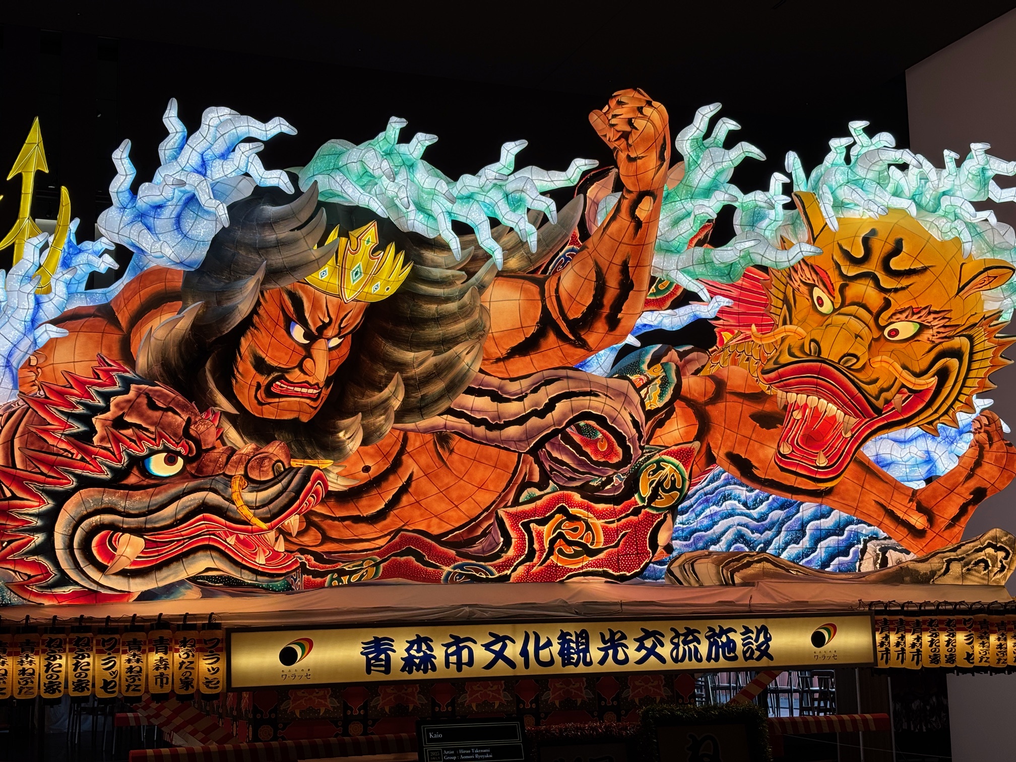 青森開港から400年という節目の本年、海に育まれ発展してきた青森の歴史について改めて考えるとともに、更なる繁栄への願いを込めて、海の守護神ポセイドンの勇姿をねぶたで表現する(公益社団法人 青森観光コンベンション協会HP抜粋)(2025.10)