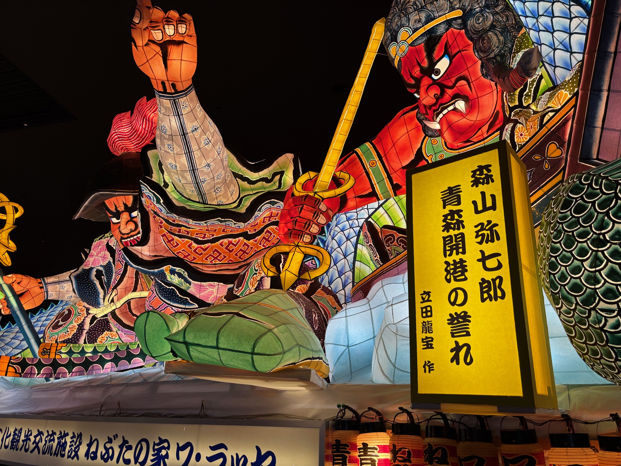 このねぶたは、開港の誉れを受け、青森の明るい未来に向けて奔走する弥七郎と、荒波の中で文化を伝播してきた北前船の勇壮さ、そしてそれを見守る神々を表したものである(公益社団法人 青森観光コンベンション協会HP抜粋)(2025.10)